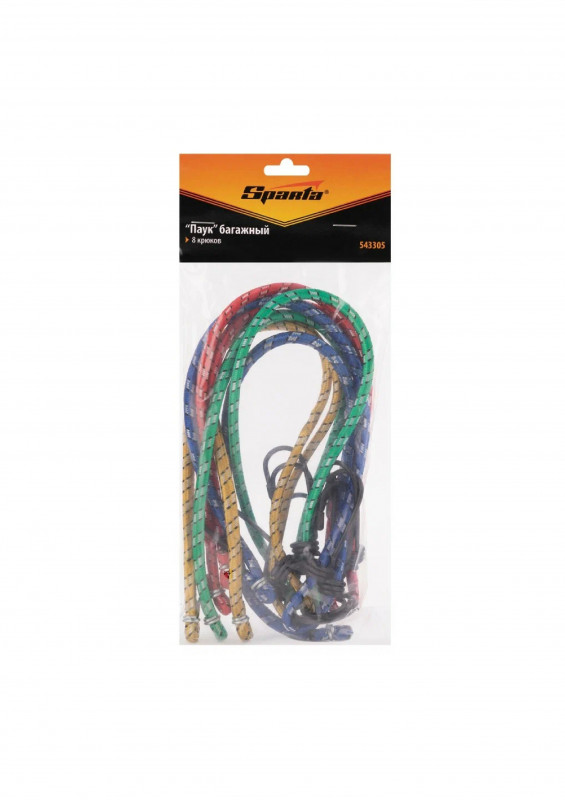 Резиновый багажный паук Sparta 543305, с 8 крюками, используется для фиксации предметов на решетчатых конструкциях. Предотвращает смещение груза при перевозке в открытом багажнике на крыше легковой автомашины. Имеет оригинальную конфигурацию — 4 эластичных резиновых жгута длиной 45 см с крюками на концах перехвачены посередине кольцом. Благодаря такому строению паук надежно удерживает предметы сложной формы. Крепежное приспособление будет полезно в поездках на автомобиле.