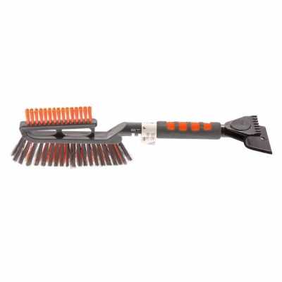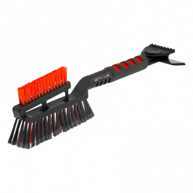 Двусторонняя щетка-сметка для снега со скребком Stels 55282 длиной 510 мм пригодится автолюбителям. Это самый подходящий инструмент, чтобы очистить занесенное снегом авто. Благодаря двусторонней щетине ей удобно чистить не только корпус, но и зеркала.ПреимуществаАвтомобильная щетка-скребок не разрушается под воздействием низкой температуры, поскольку изготовлена из морозоустойчивого пластика.Щетка не царапает лакокрасочное покрытие кузова благодаря мягкой щетине.Скребок быстро очищает стекла от льда, т.к. его ширина составляет 95 мм.Рукоятка очень прочная, поскольку изготовлена из алюминиевого сплава.Автомобильной щеткой комфортно пользоваться без перчаток, т.к. на ее рукоятке имеется мягкая накладка.Если очистка авто занимает много времени, рука не устает, поскольку щетка со скребком весит всего 270 г.