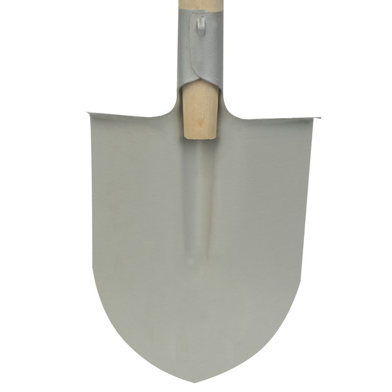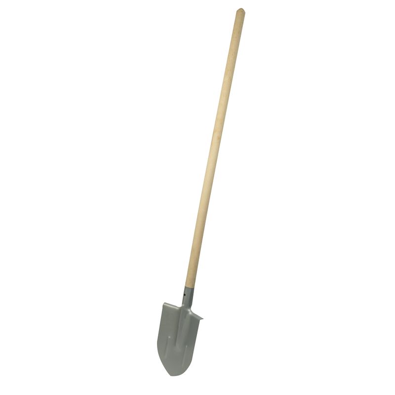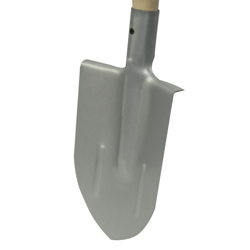 Лопата штыковая рельсовая из стали с прямым деревянным черенком. Она используется для вскапывания почвы и удаления корней, также для подготовки земли перед посадкой растений или для проведения строительных работ.