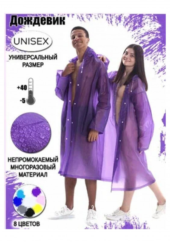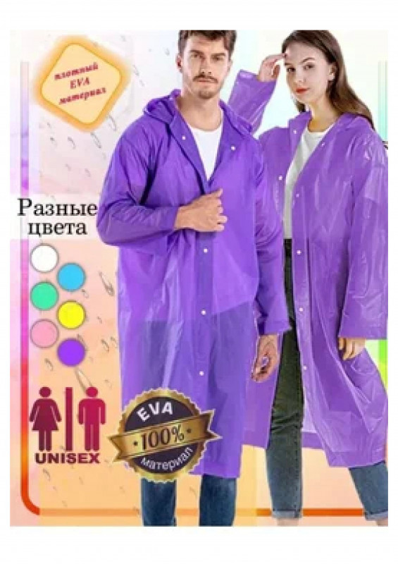Плащ дождевик EVA фиолетовый - плотный плащ, идеально подойдет для отдыха на природе, рыбалке, пикника и городских прогулок. Изделие прекрасно подходит для защиты от дождя.