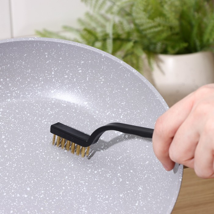 латунная используется для чистки кафельной плитки, духового шкафа, варочной панели — она имеет среднюю жёсткость.