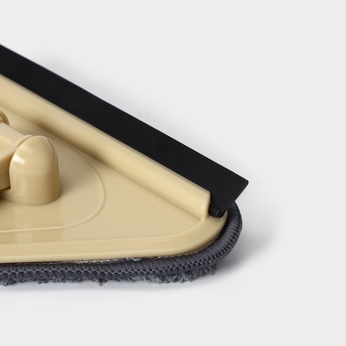 Установите скребок в верхнем левом углу окна и, прижимая к стеклу, ведите швабру сверху вниз, сгоняя воду и грязь, до нижнего края рамы.