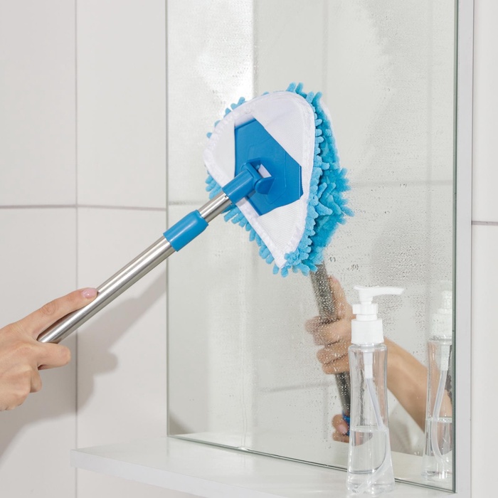 Окномойка с телескопической металлической ручкой,13х13х55(92)см, цвет синий