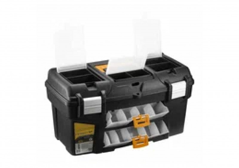 В ящике предусмотрен вкладыш для инструментов с внутренними перегородками, вместительное главное отделение позволяет организовать хранение множества инструментов.
