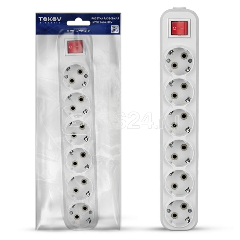 Колодка 6-гнезд 16А с/з с выкл.АБС пластик белый TOKOV ELECTRIC TKE-C01-KU6-ZV