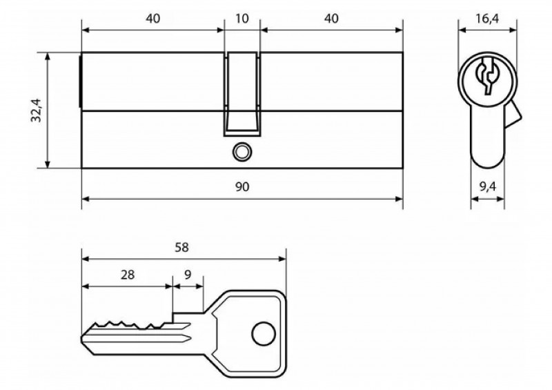 Механизм цилиндровый Z.I.90-5K СР 40х10х40 кл/кл Стандарт