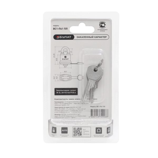 Замок навесной ВС 1-П41 ПЛ d-6,5мм 5кл всепогодный БУЛАТ