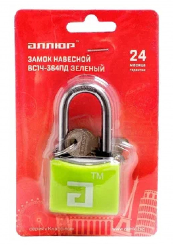 Замок навесной длин дужка ВС1Ч-364ПД 6мм 5кл Аллюр зеленый
