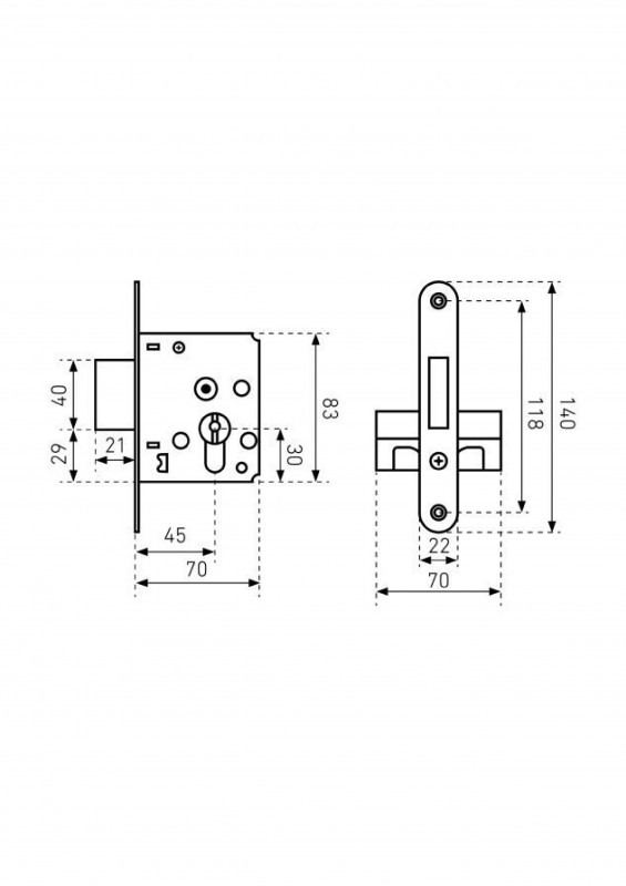 Замок врезной 3В1-2У пакет без руч Птимаш