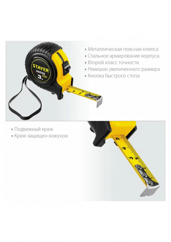 Рулетка в ударостойком обрезиненном корпусе 3м STAYER MASTER