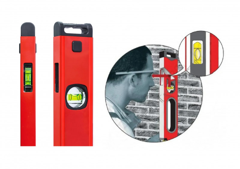 Пузырьковый уровень – измерительный прибор, который будет одинаково полезен как в быту, так и при масштабных строительных работах. Трудно идеально ровно повесить картину в раме или полку для книг без дополнительной помощи, а вывести идеально ровную стену без уровня просто невозможно. Он имеет несколько глазков,которые помогут точно проверить ровность как горизонтальных, так и вертикальных поверхностей.