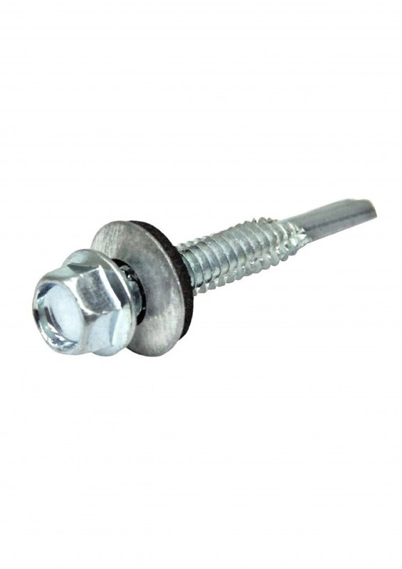 кровельный саморез имеет острый или сверлящий наконечник и шайбу с резиновой прокладкой. Резиновая прокладка служит для гидроизоляции крепления, устойчива к постоянным изменениям нагрузок, перемене температур и другим внешним условиям. Кровельный саморез вкручивается и с помощью шайбы, плотно притягивает кровельный материал к каркасу крыши, также за счет шайбы предотвращается попадание воды в места стыка. Кровельные саморезы представлены 2-х видов, в зависимости от материала использования. Кровельные саморезы диаметра 4.8 специально разработаны для крепления кровли к дереву, они имеют характерный редкий шаг резьбы и уменьшенное сверло. Кровельные саморезы диаметром 5.5 и 6.3 напротив созданы для монтажа в металл, на что указывает частая резьба и увеличенная сверловая часть.