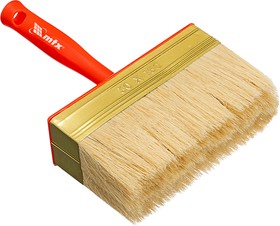 Ворс кисти макловицы натуральная щетина, расщепленная на концах. Щетина кисти удлинена, надежно закреплена металлическим бандажом с антикоррозийным покрытием. Пластмассовая ручка, утолщенная в зоне охвата, имеет отверстие для подвешивания, а также специальное приспособление для крепления на емкость. Кисть применяется для размывания ЛКМ и окрашивания больших поверхностей. Предназначена для работ с масляными красками, лаками и нанесения клеящих составов.