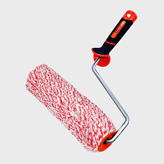 Валик применяется для рельефных и пористых поверхностей фасадов и внутри помещений. Увеличенный объем валика для ускорения работы. Прорезиненная ручка и чаша для удержания краски. Оцинкованный бюгель.